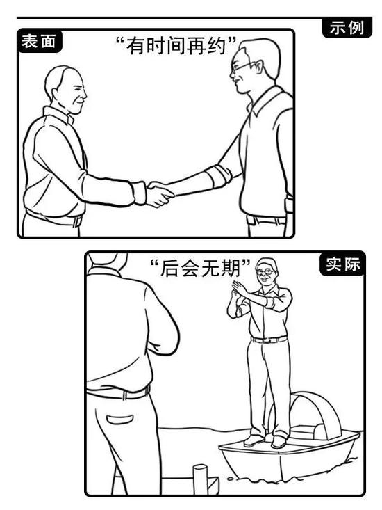 例:“ 有时间再约 ”=“ 后会无期 ”